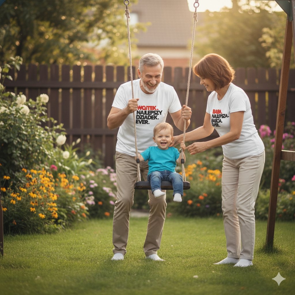 Chcesz, żeby upominek był naprawdę „ich”? Wybierz projekty z imieniem, np. „Mów mi Babciu Basiu” albo „Mów mi Dziadku Wojtku”. Spersonalizowana koszulka dla babci czy koszulka dla dziadka to mały detal, który robi wielkie wrażenie.